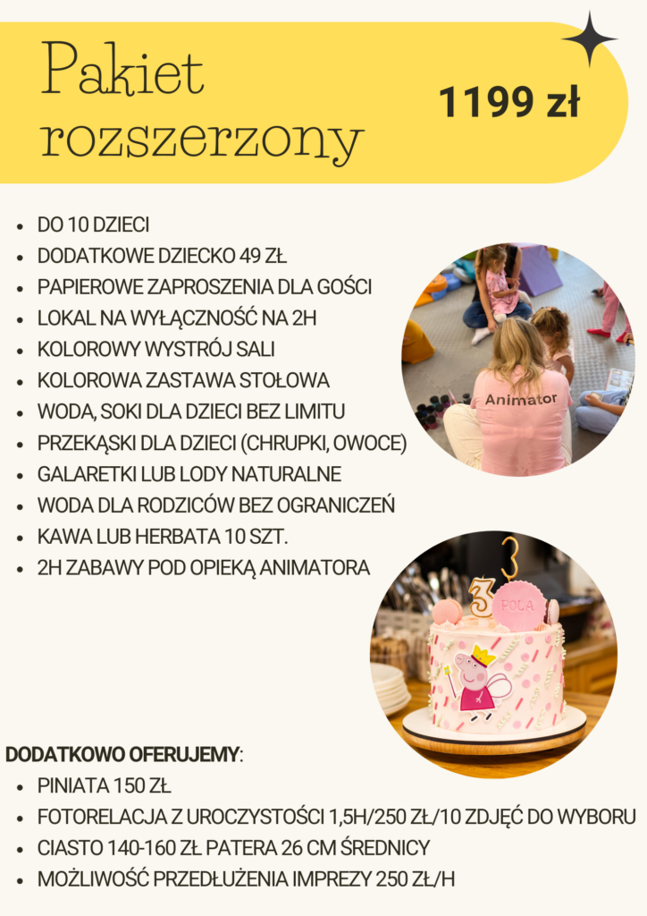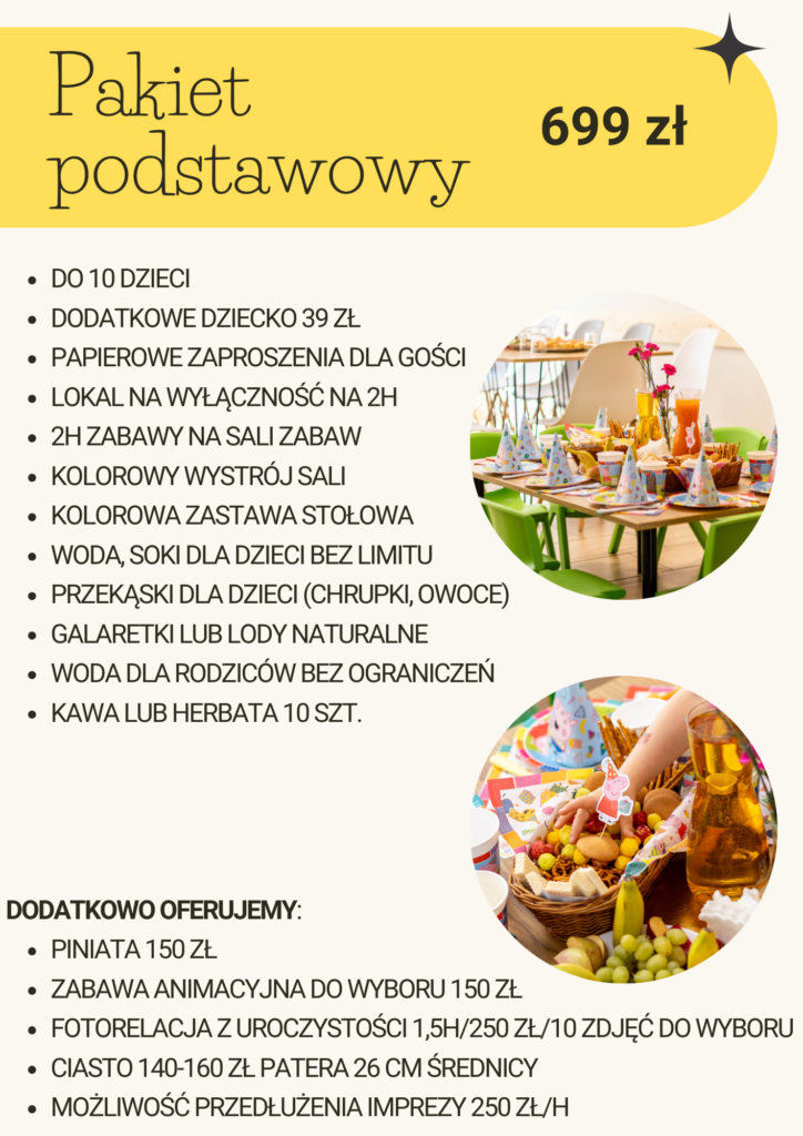 Sprawdź nasze pakiety urodzinowe już od 699 zł z rezerwacją sali na wyłączność.